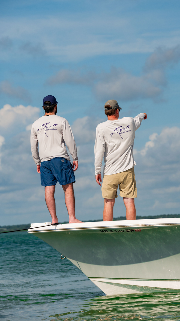 Stick It Anchor Pins® are for use in shallow water and are recommended for flats boats up to 24 feet or bay boats up to 20 feet. If you are fishing flats, shallow channels, sand bars, points or mangrove shorelines in 11 feet of water or less you can be assured of faster, quieter and stronger anchoring with the Stick Anchor Pins® shallow water anchoring system.